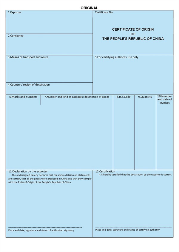 一般原產地證 ORIGINAL