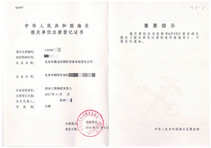 以下為老版海關報關單位注冊登記證書,新的海關證書備案回執或報關單位證明具有同樣法律效力。